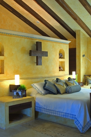 Casa de playa en las costas de Yucatán, con un estilo mexicano rústico. Este proyecto cuenta con una paleta de colores cálidos y elementos decorativos propios de la región como palapas de huano, muros de piedra y amplias terrazas.